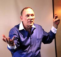 Вы сейчас смотрите на Хранителя (Стива Ротера) на сцене. Вы видите цветы, стол, и да, его айс-ти, который вы не должны видеть, поэтому я поставлю его туда. Так как вы видите все так, как можете воспринять в своем мире, то верите, что атомы расположены в том порядке, который дает вам возможность видеть все это. Это и есть то, что вы называете реальностью. Тем не менее, сейчас здесь происходит гораздо больше явлений. Множество реальностей существуют прямо здесь и сейчас, но вы их не замечаете. Вы видите меньше чем одну десятую всего того, что происходит здесь в эту самую минуту. Зачем вам это знать? Как вы можете это использовать? Позвольте объяснить.